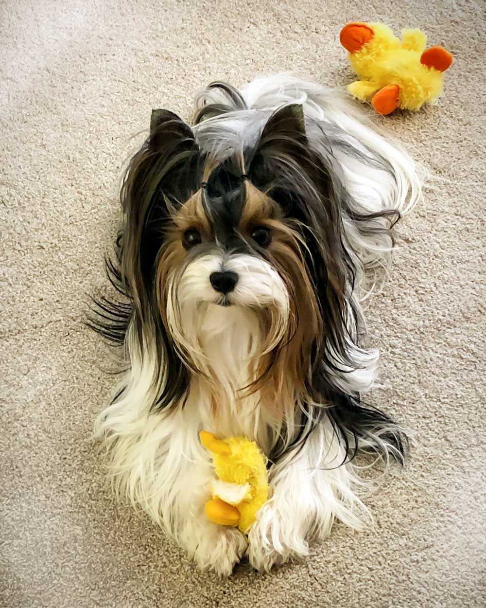 Most of the pictures are taken from our Puppy Parent Group on Facebook. If you have a good picture of your adult Rocky Mountain Biewer Terrier, feel free to text it to (970)882-3299 so we can post it here.